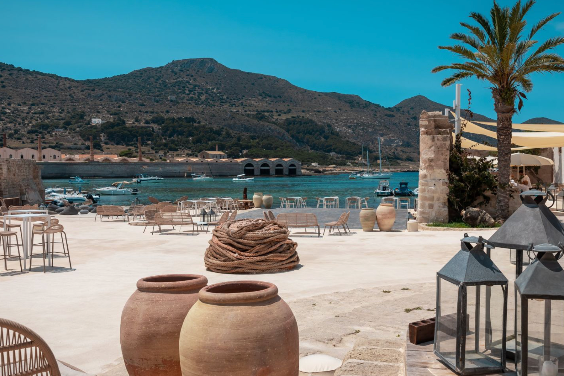riginally used to house the boats of the tuna fishery, Campania blends industrial history with island charm. Its open spaces and historic architecture create a unique backdrop for intimate ceremonies and striking photographs.